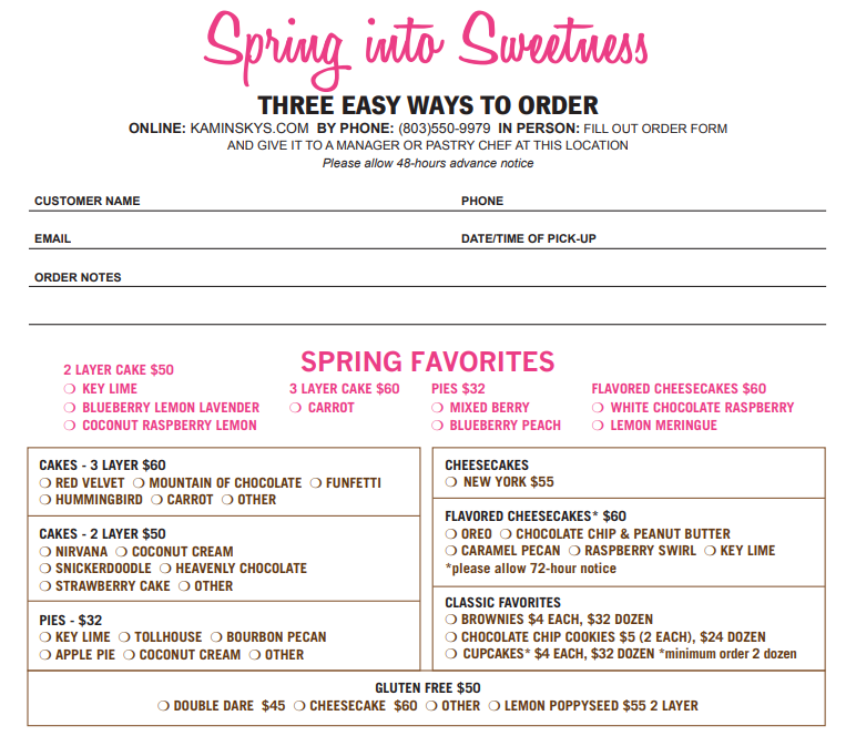 LISTED ITEMS ARE NOT LIMITED TOO, PLEASE CONTACT PASTRY CHEF
